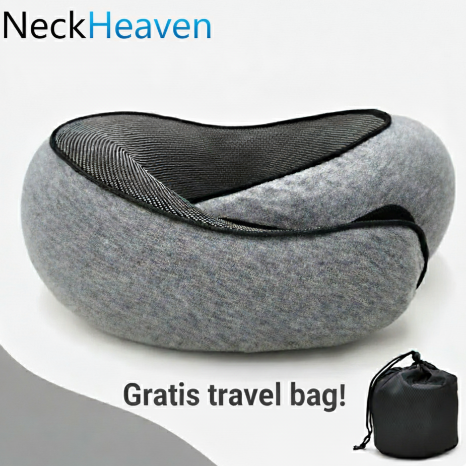 NeckHeaven ger dig omedelbar nacklindring, perfekt stöd och total avslappning – precis som de exklusiva stolarna framme i planet.